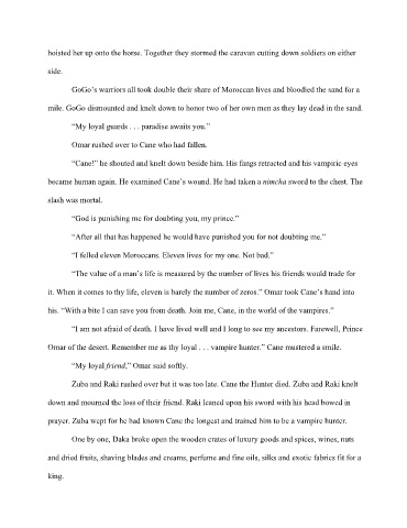 prayer. Zuba wept for he had known Cane the longest and trained him to be a vampire hunter.
