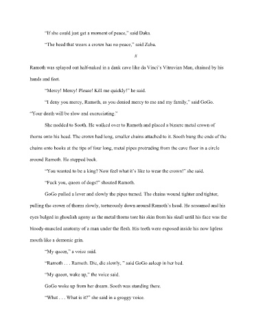 pulling the crown of thorns slowly, torturously down around Ramoth’s head. He screamed and his