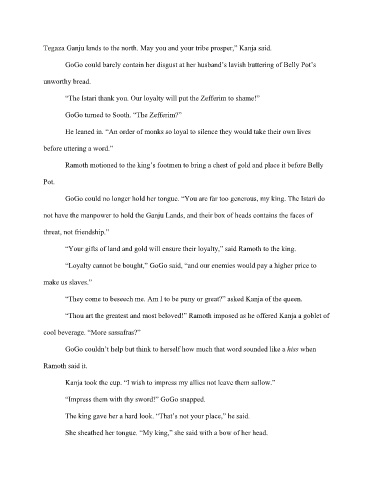 “Your gifts of land and gold will ensure their loyalty,” said Ramoth to the king.