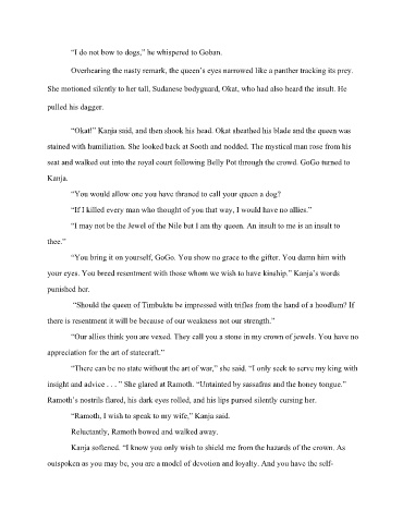 “Okat!” Kanja said, and then shook his head. Okat sheathed his blade and the queen was