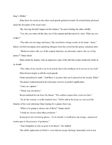 Daka’s skillful swordplay drew admiring whispers from the crowd but the prince remained stern.
