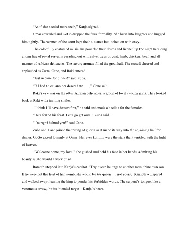 manner of African delicacies. The savory aromas filled the great hall. The crowd cheered and