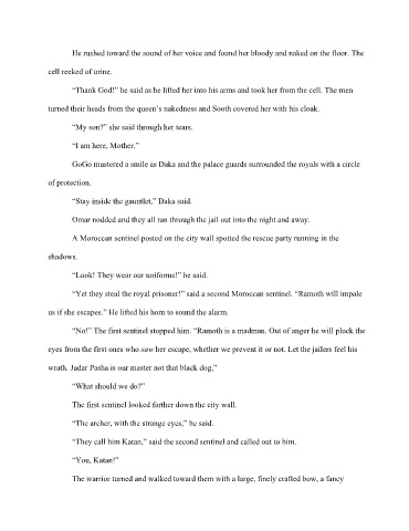 “Yet they steal the royal prisoner!” said a second Moroccan sentinel. “Ramoth will impale