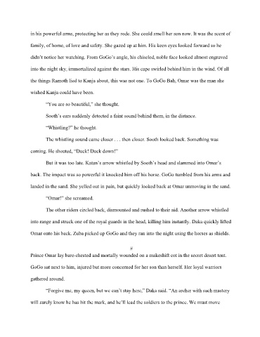 But it was too late. Katan’s arrow whistled by Sooth’s head and slammed into Omar’s