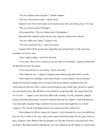 “I am Lilith. Thou art Eve. Enfold me and feel what was forbidden.” Sygnosis nibbled her